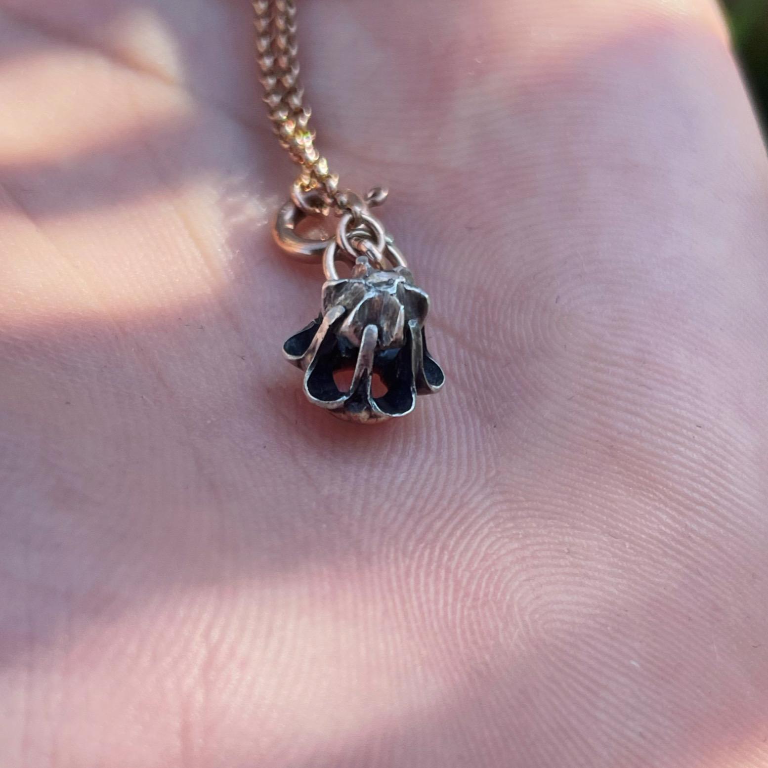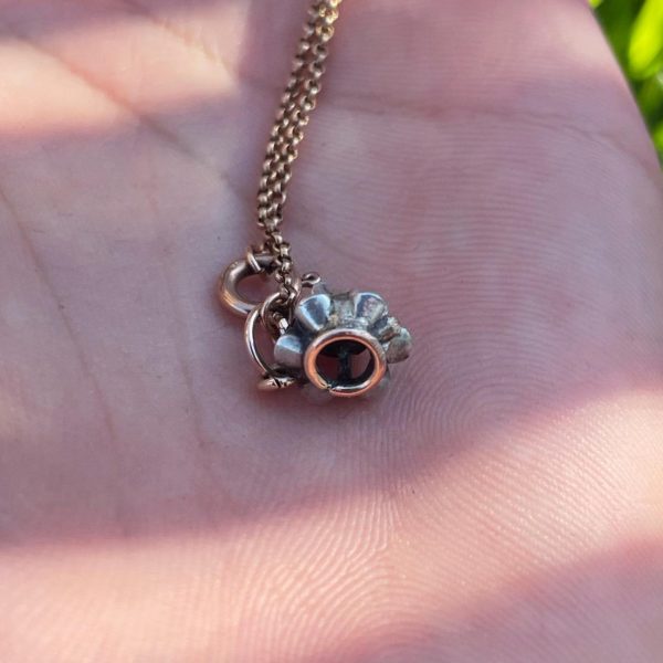 A Georgian pendant/charm (about 200 years old – probably once a part of a necklace), 9k gold and silver, set with a tiny, foiled back rose cut diamond.
