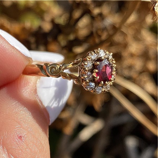 Antique ruby diamonds cluster ring