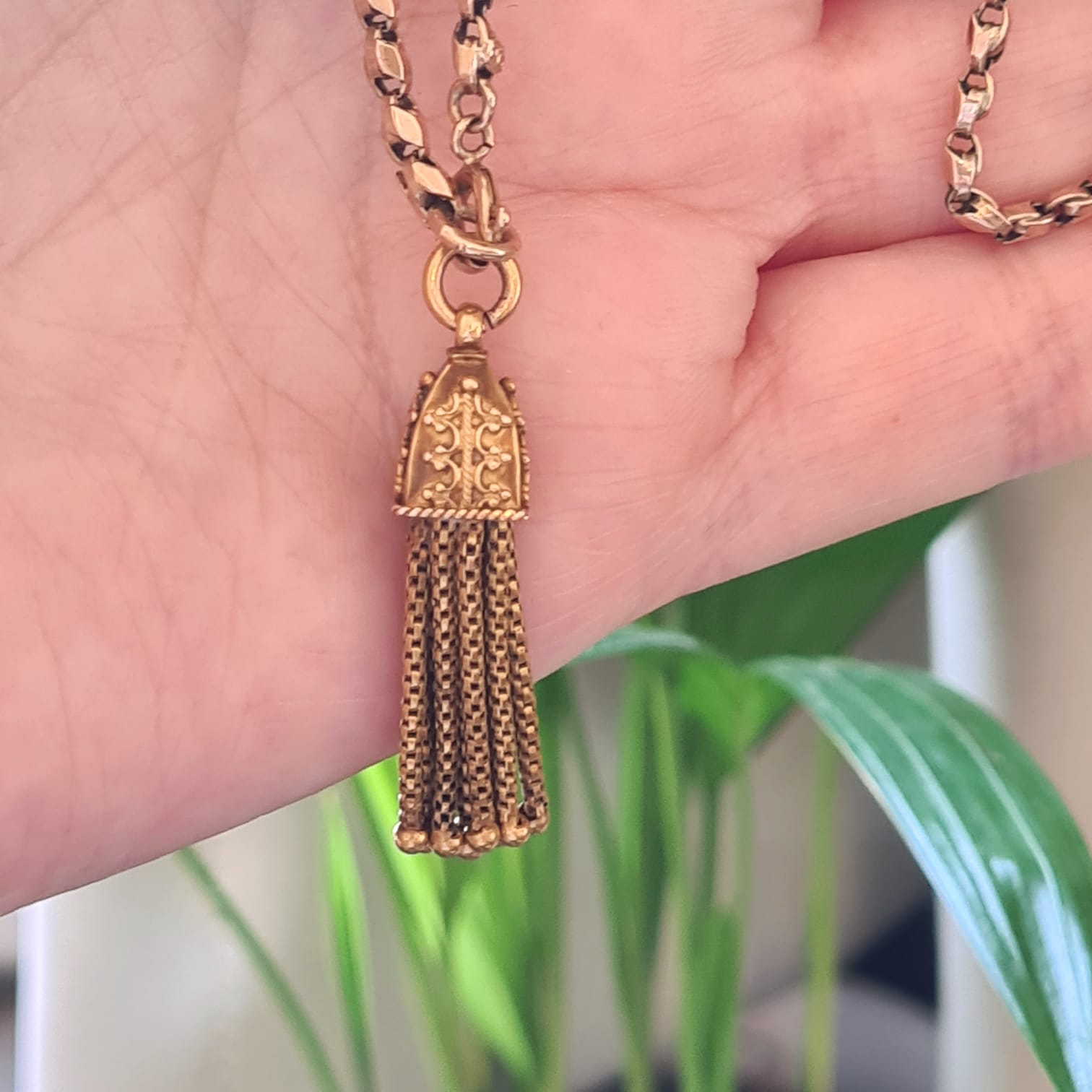 Antique pendant, 15k rose gold, with an upper part decorated on all sides from which tassels come out
