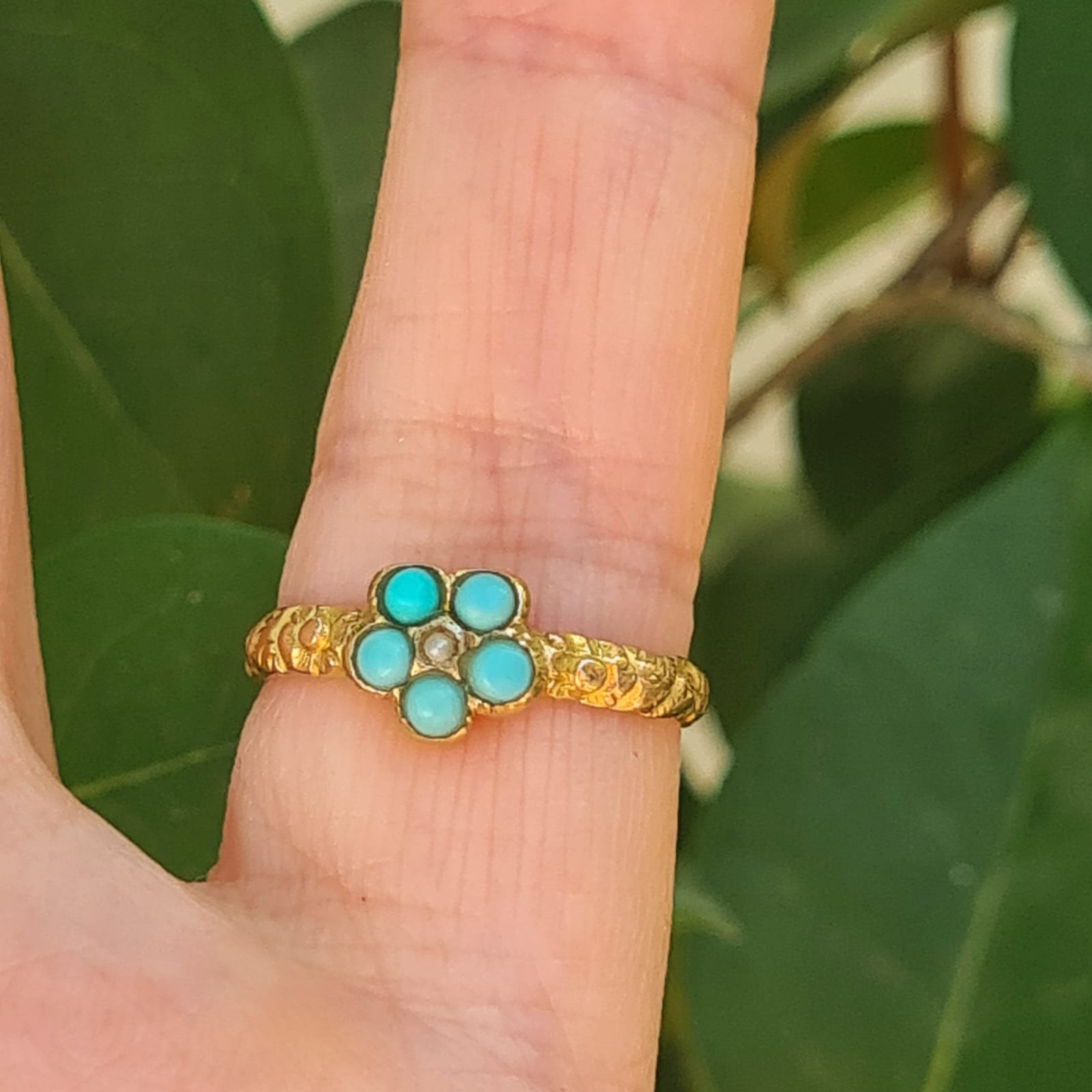 טבעת טורקיז עתיקה, סוף תקופה ג'ורג'יאנית-תחילת ויקטוריאנית, יפהיפיה , מתאימה לזרת, זהב 15k.