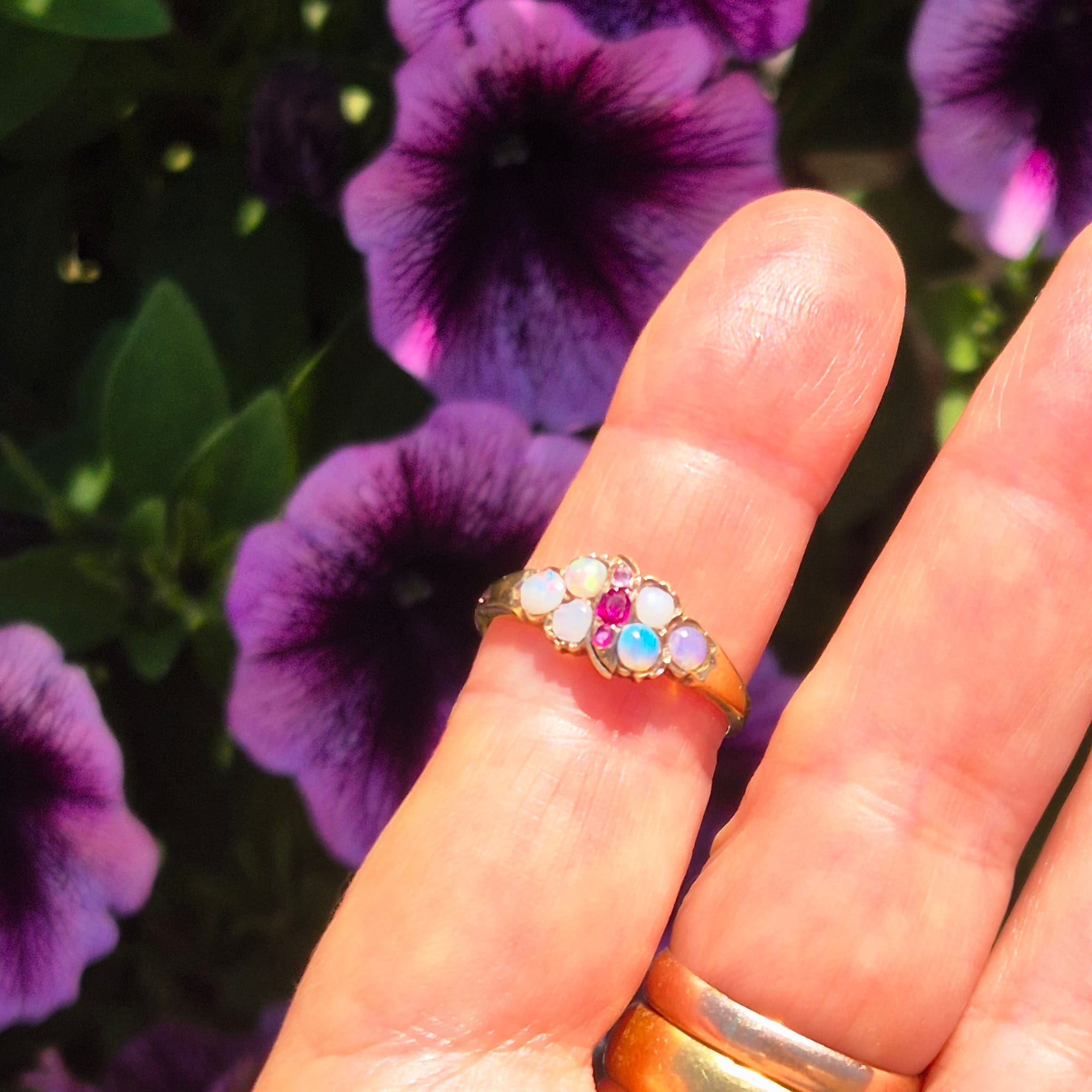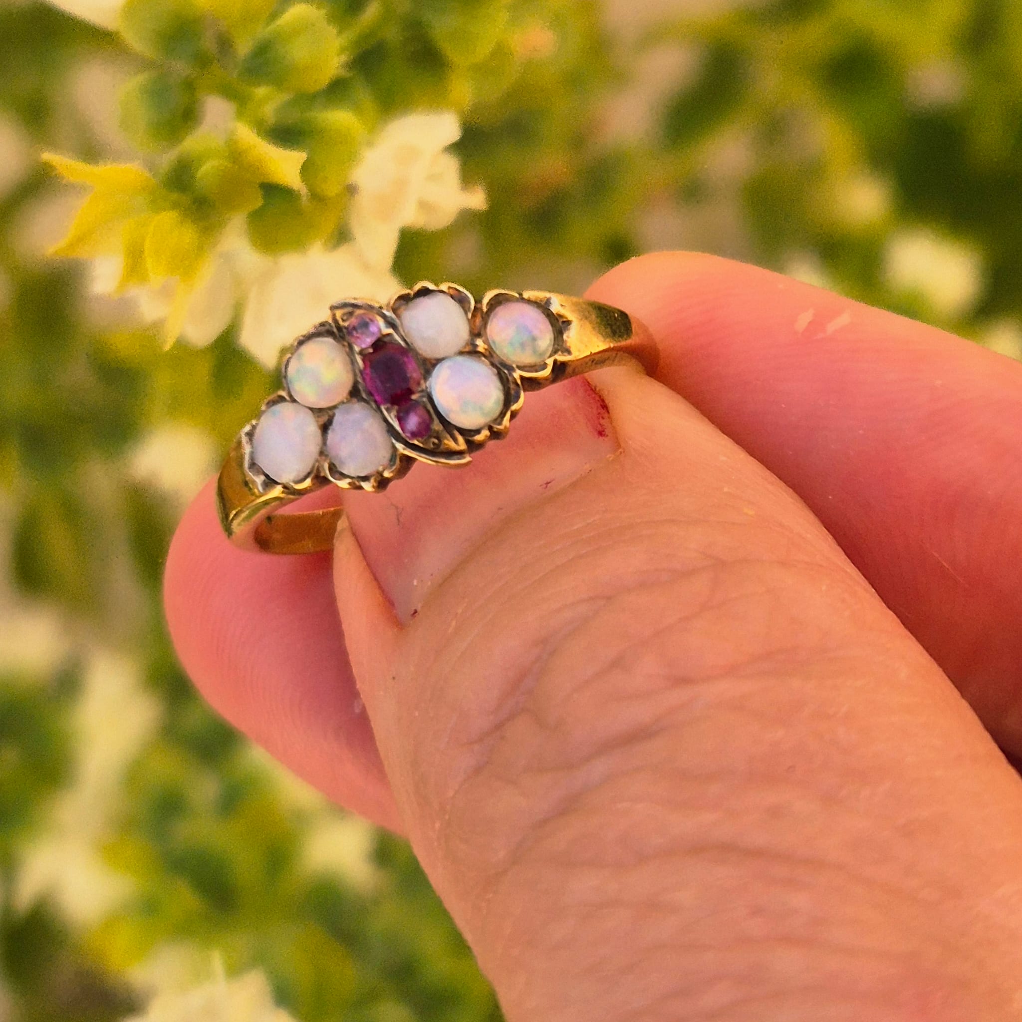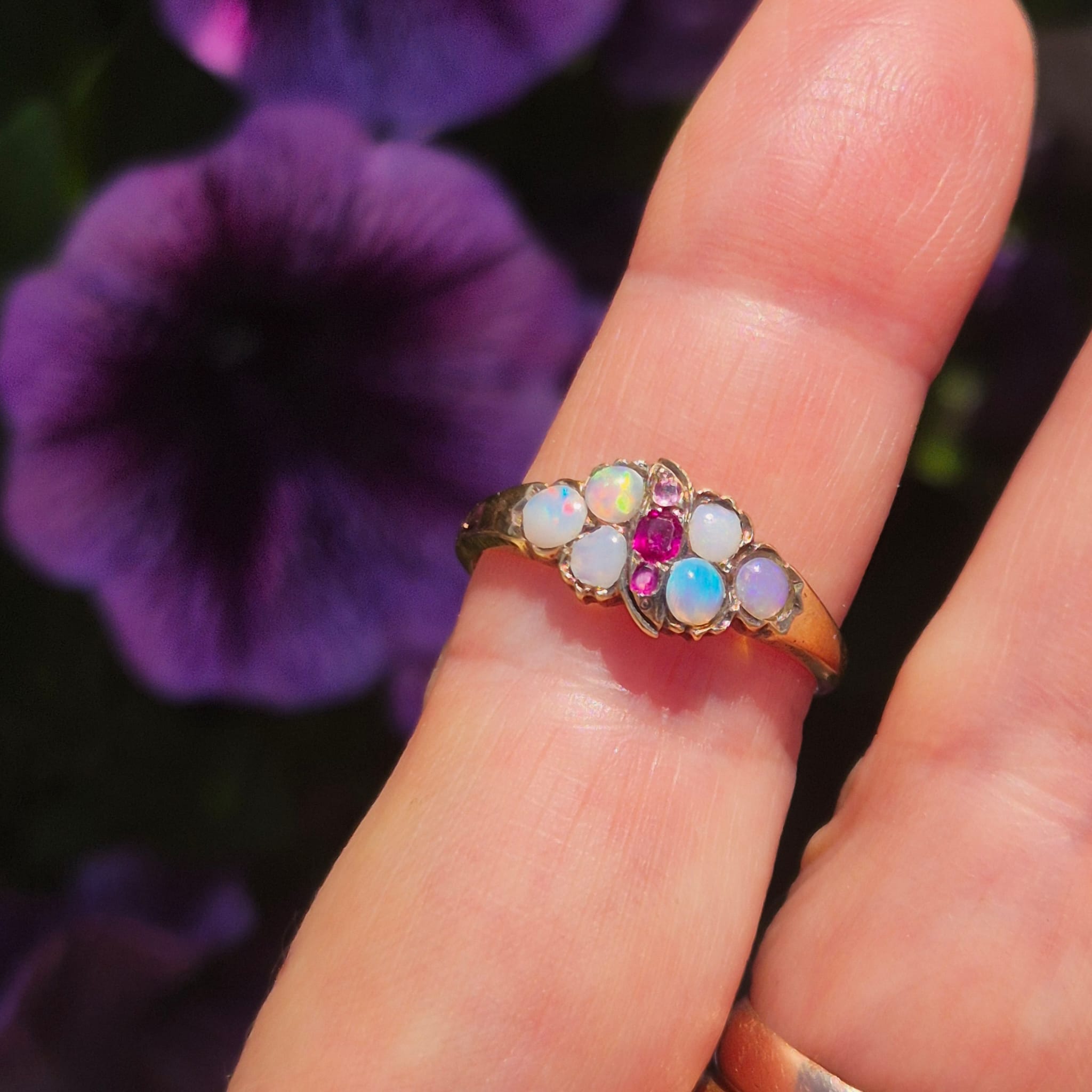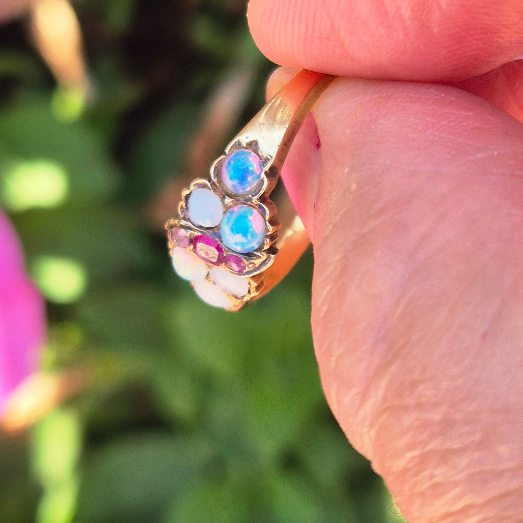 טבעת עתיקה אופל רובי מזהב
