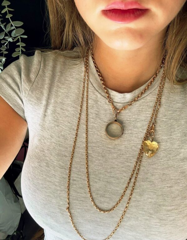הלוקט עגול בעל עומק יוצא דופן. הלוקט עם מסגרת רחבה זהב אדום 9 קאראט אנגלי