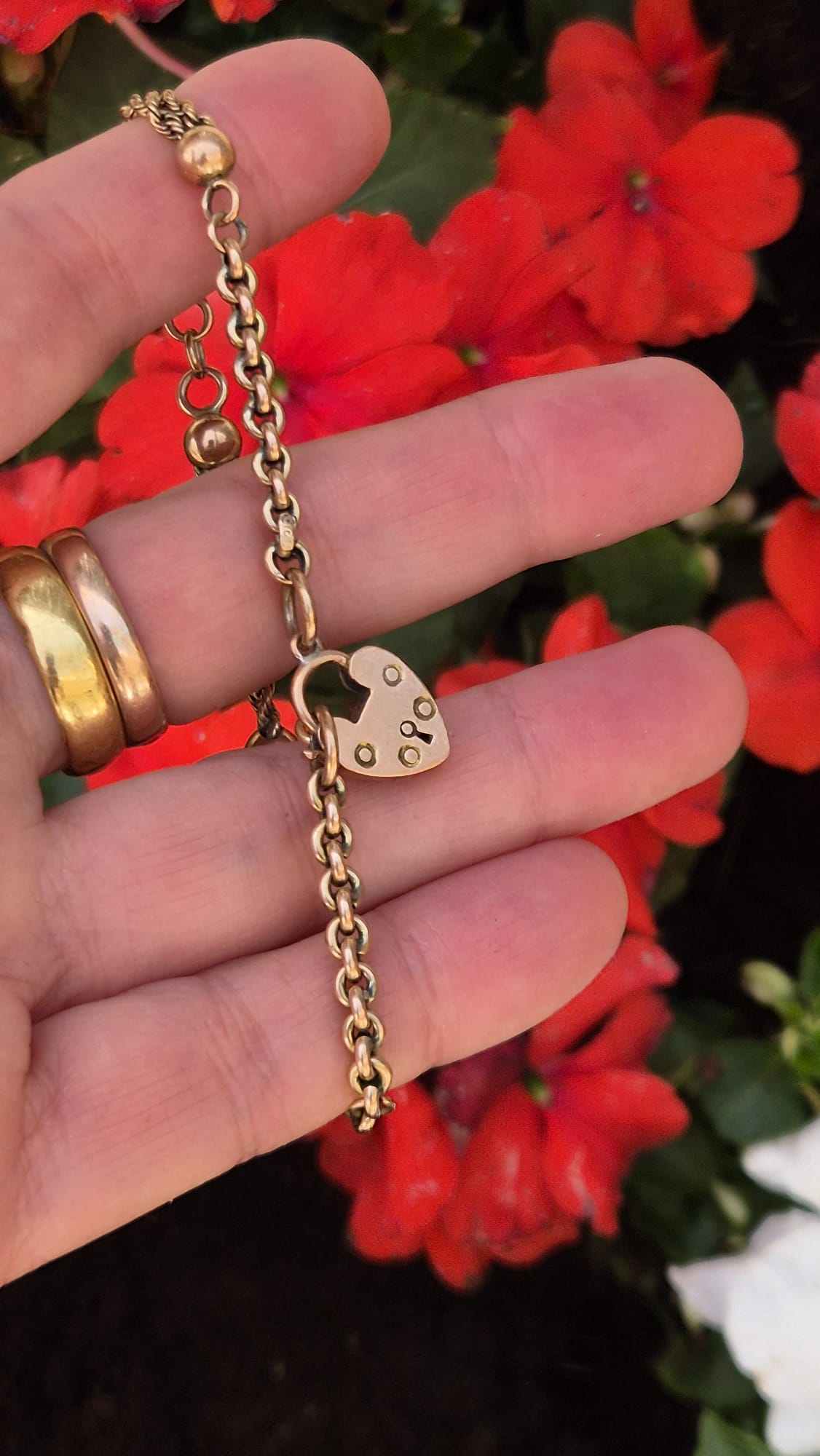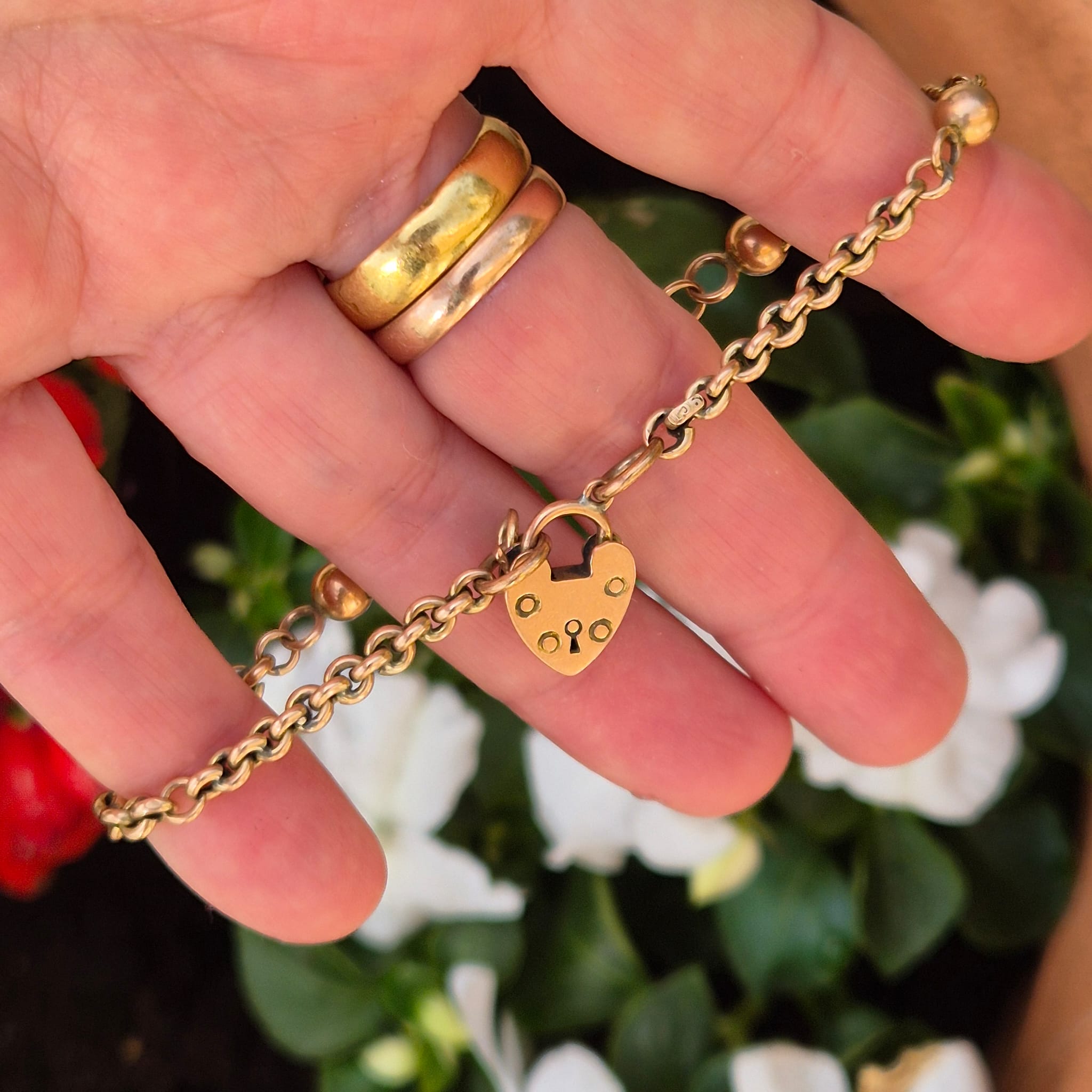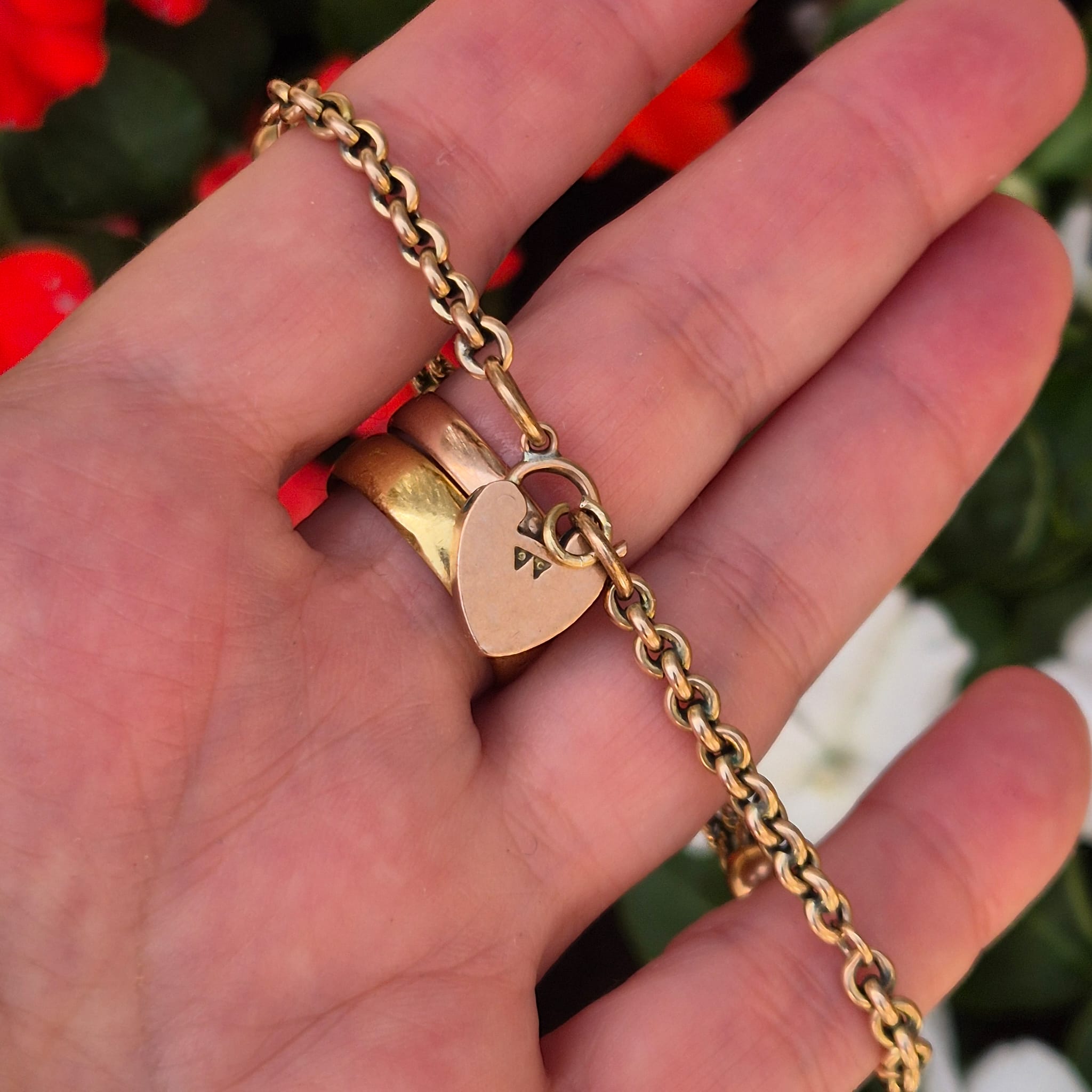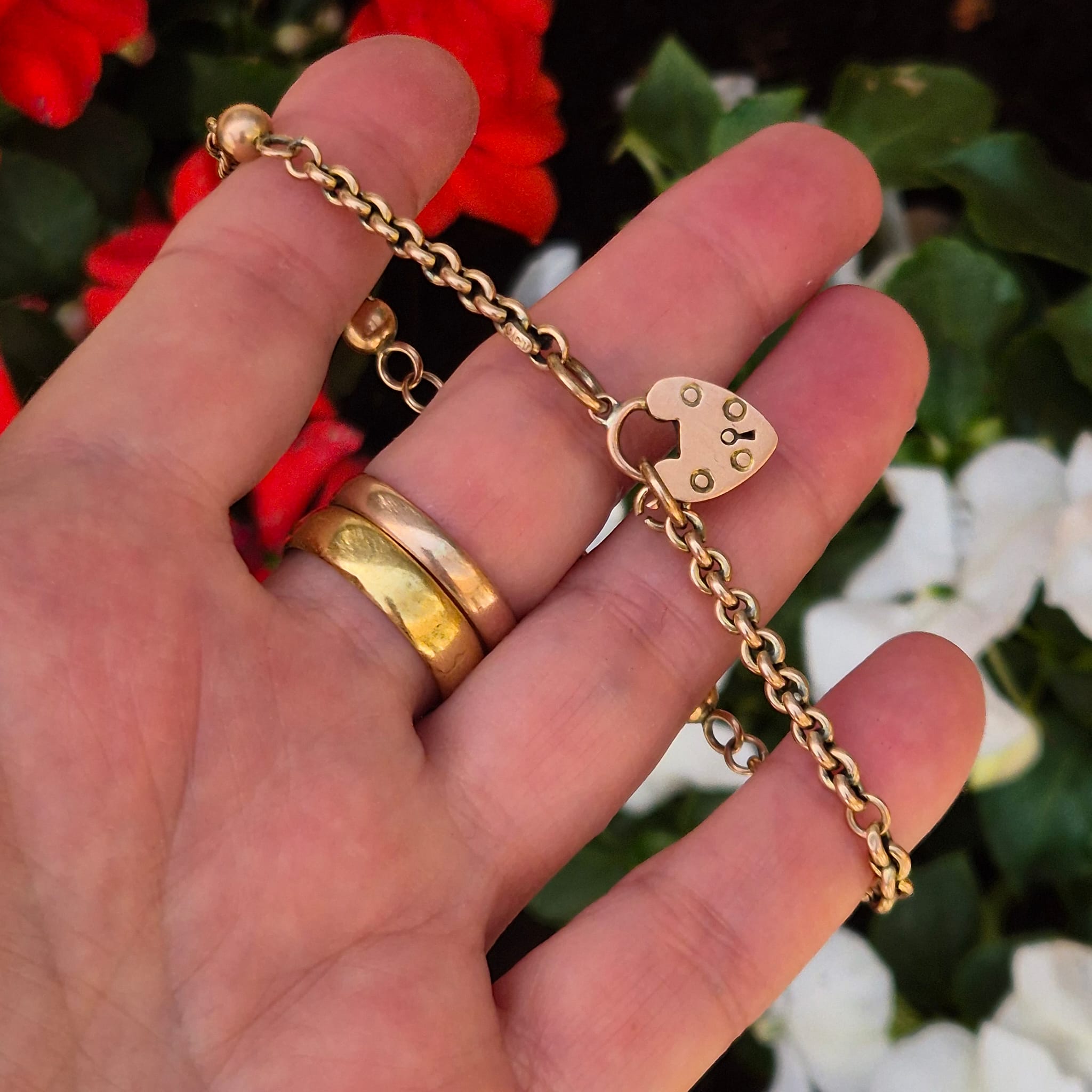 זהב 9 קאראט אדום, סוגר עם פדלוק לב חתום.