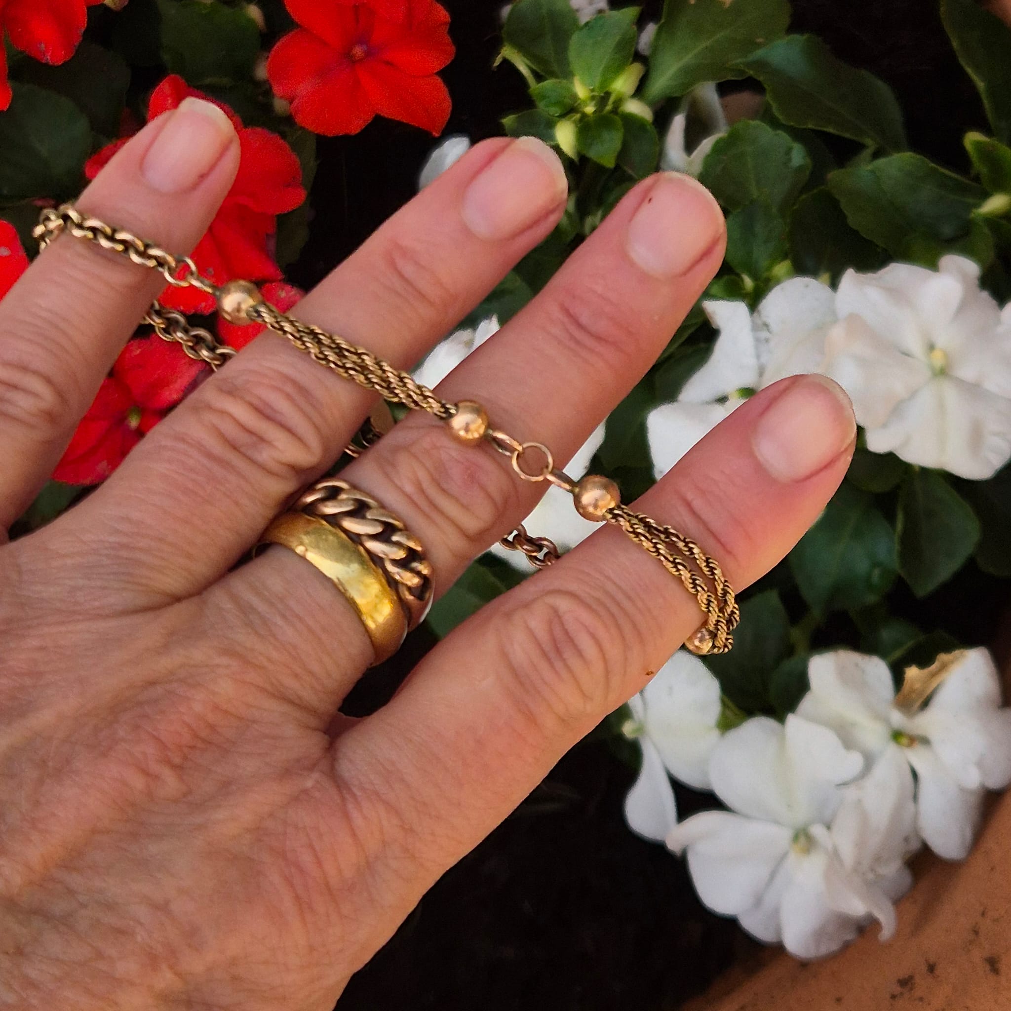 הצמיד מורכב מ"שרשרת " אלברטינה קלאסית, עם חוליות עגולות אחידות, אלמנטים של קישורי חבל עדינים (rope twist)
