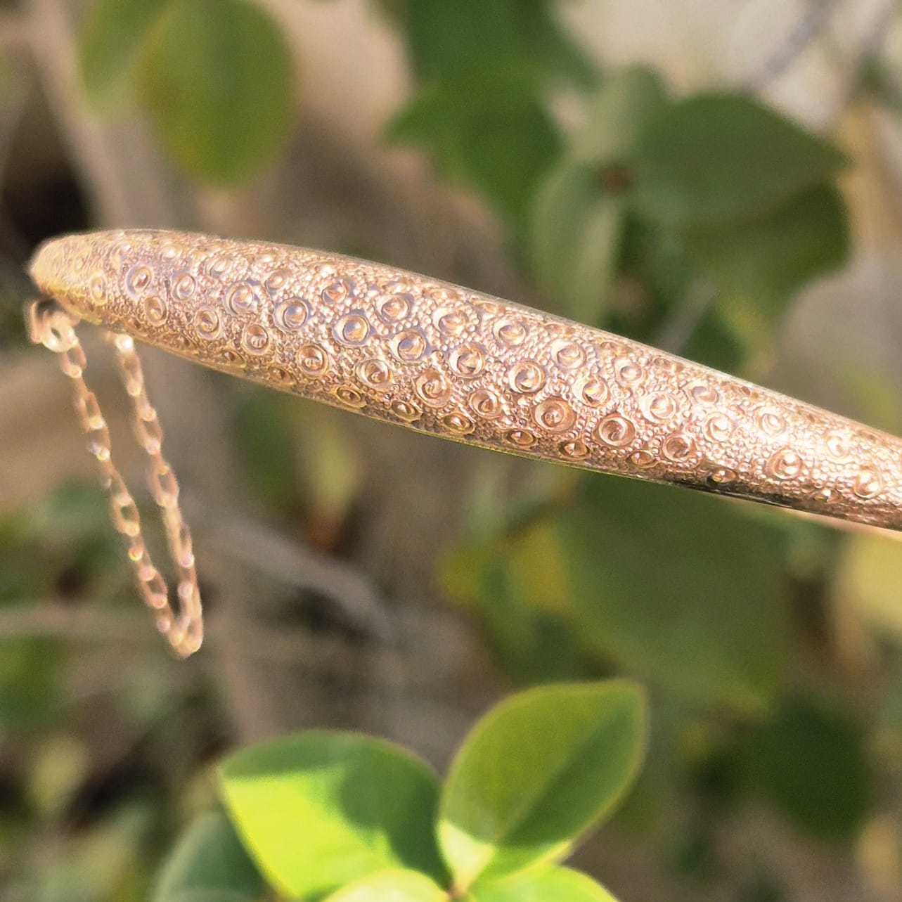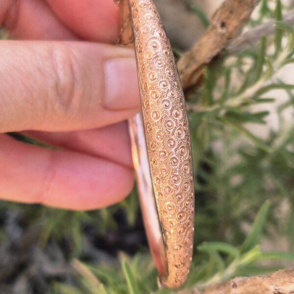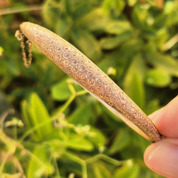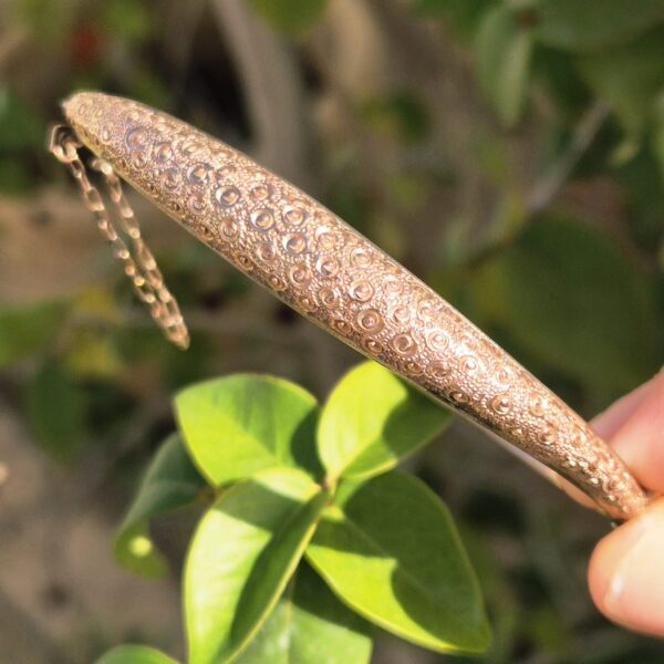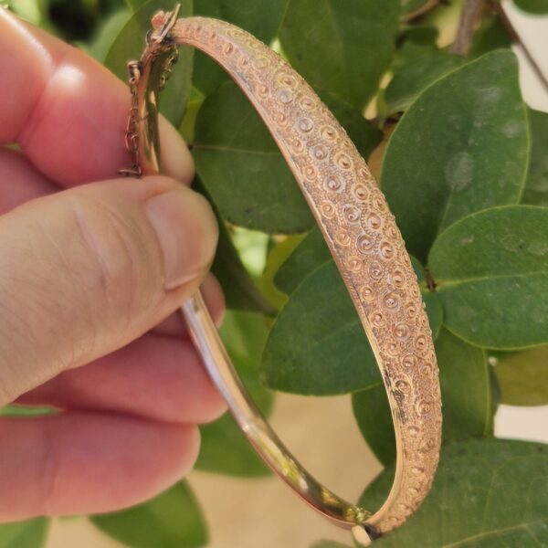 צמיד עתיק קשיח, זהב אדום חם 9 קאראט, חתום.