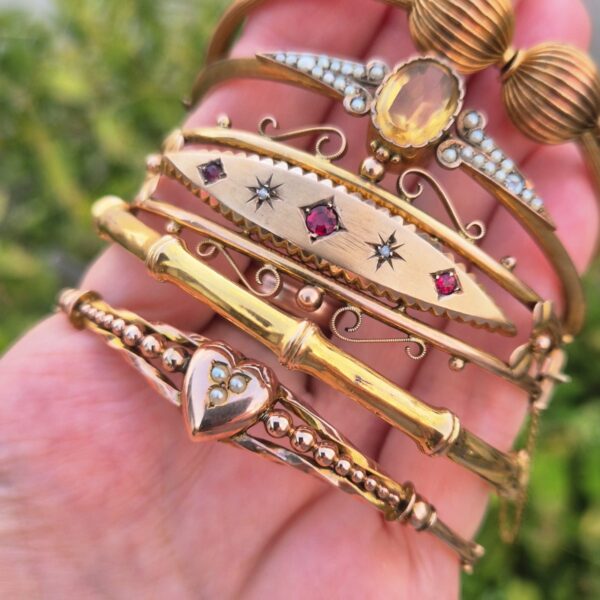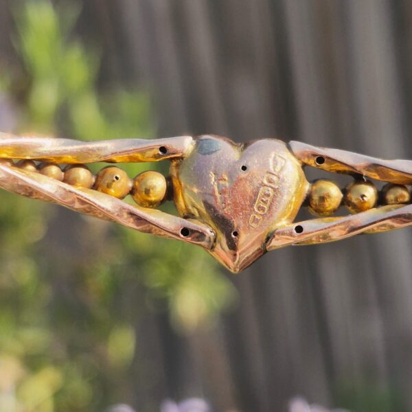 צמיד קשיח אנגלי עתיק ,עשוי זהב אדום חם 9 קאראט, חתום (ראו בתמונות) ויקטוריאני, משנת1891.