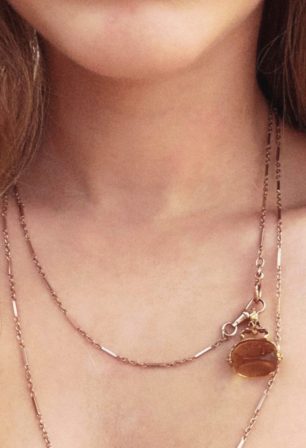 אורכה מאפשר ענידה ארוכה קלאסית, כריכה כפולה או שילוב עם תליון פוב, לוקט או שעון כיס קטן. פריט ורסטילי ונוח, המשמר את האסתטיקה האלגנטית והמעשית של שרשראות גארד היסטוריות.(ראו תמונות עם פוב ציטרין)