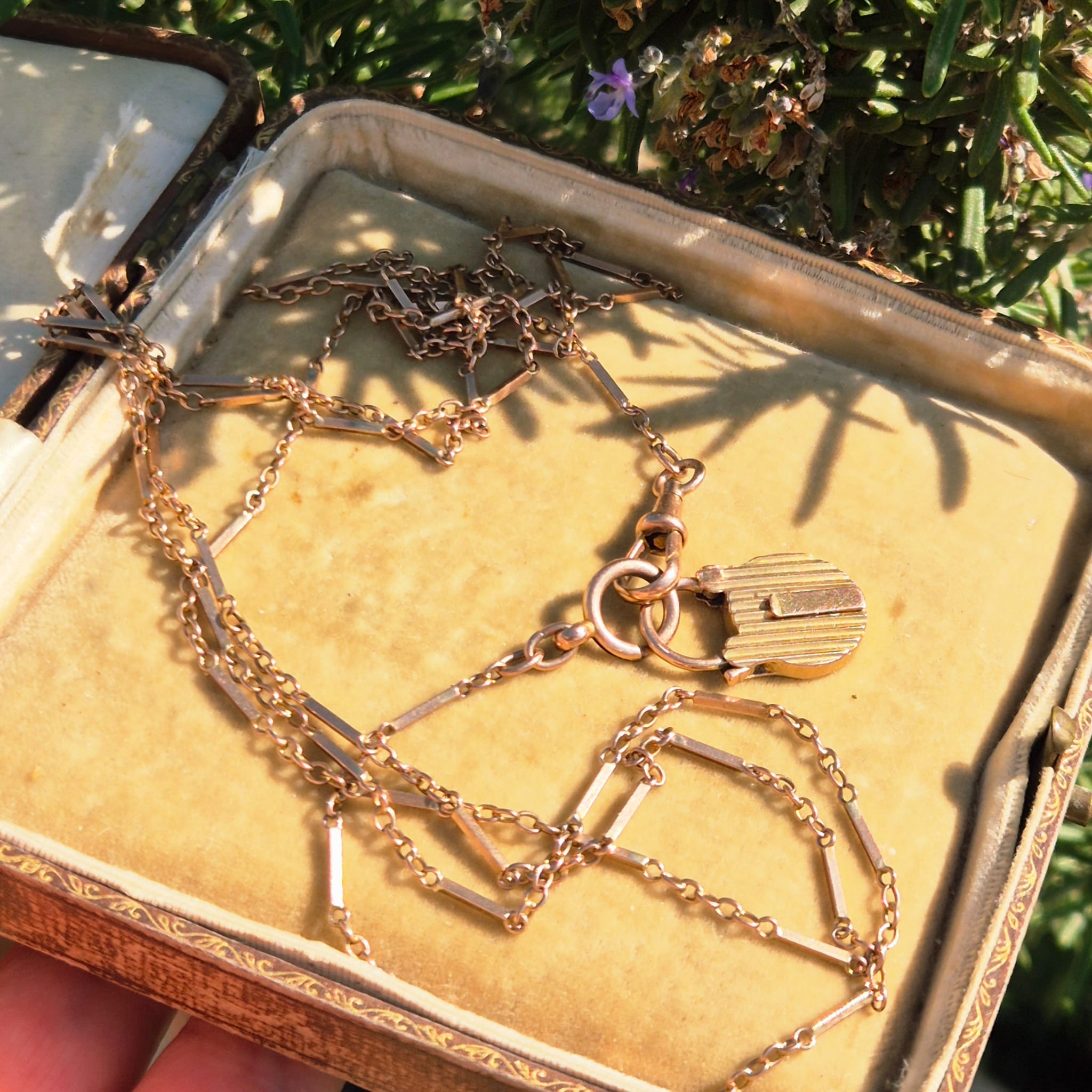 שרשרת גארד עתיקה מזהב 9 קאראט בגוון אדמדם חמים, באורך של כ־110 ס״מ.