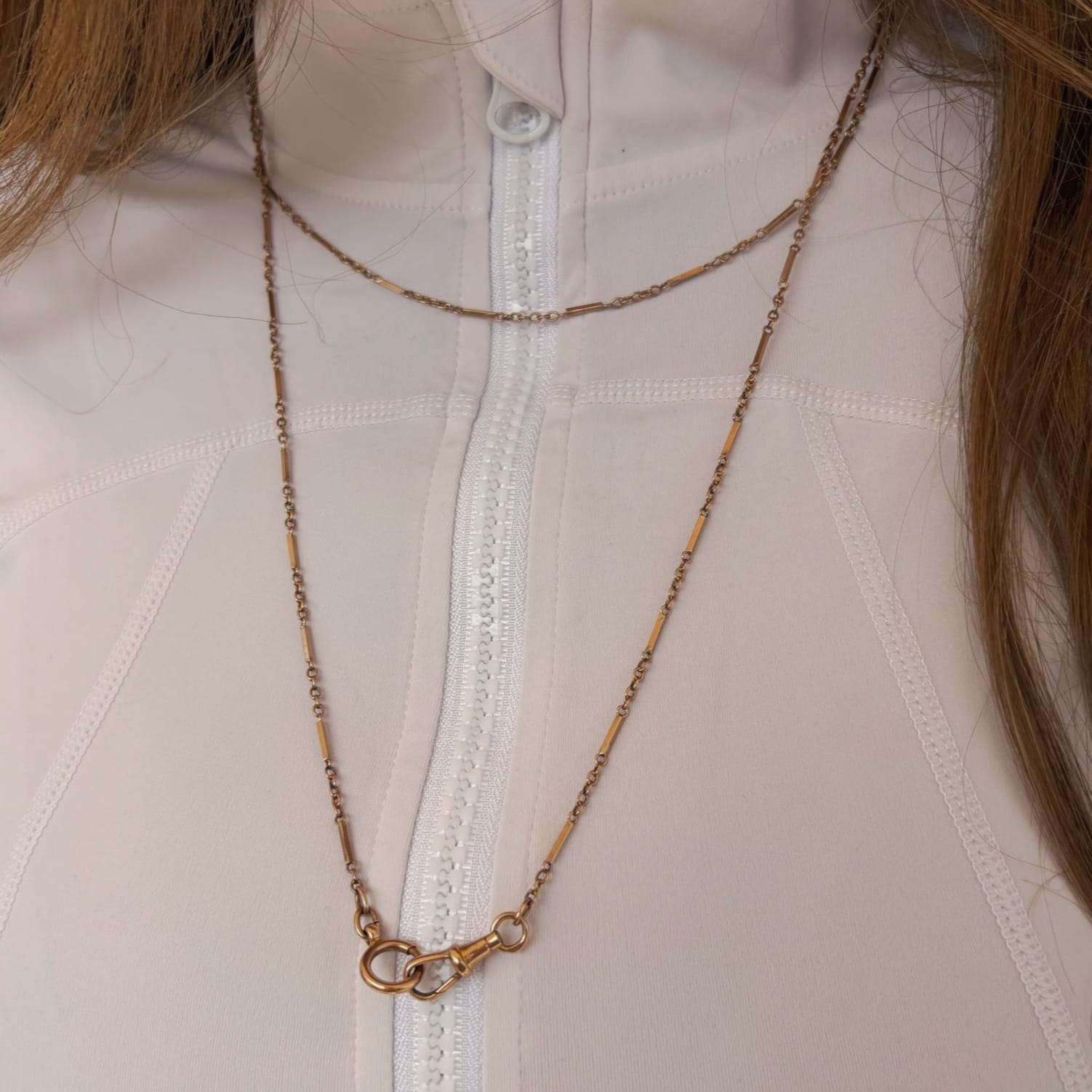 שילוב זה מאפשר ענידה כפולה, חיבור לתליונים ופובים, או כריכה כפולה סביב הצוואר (לבעלות צוואר צר יותר)ליצירת מראה שכבות אותנטי לתקופה.