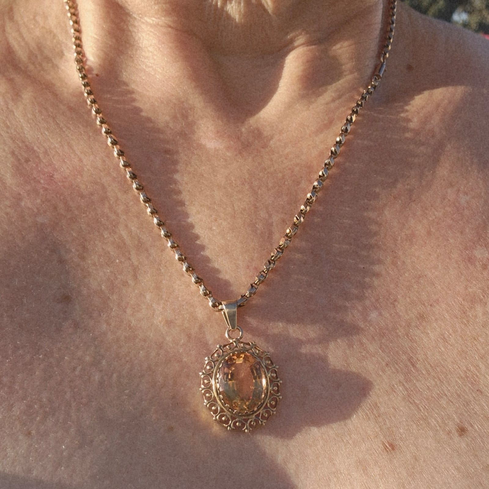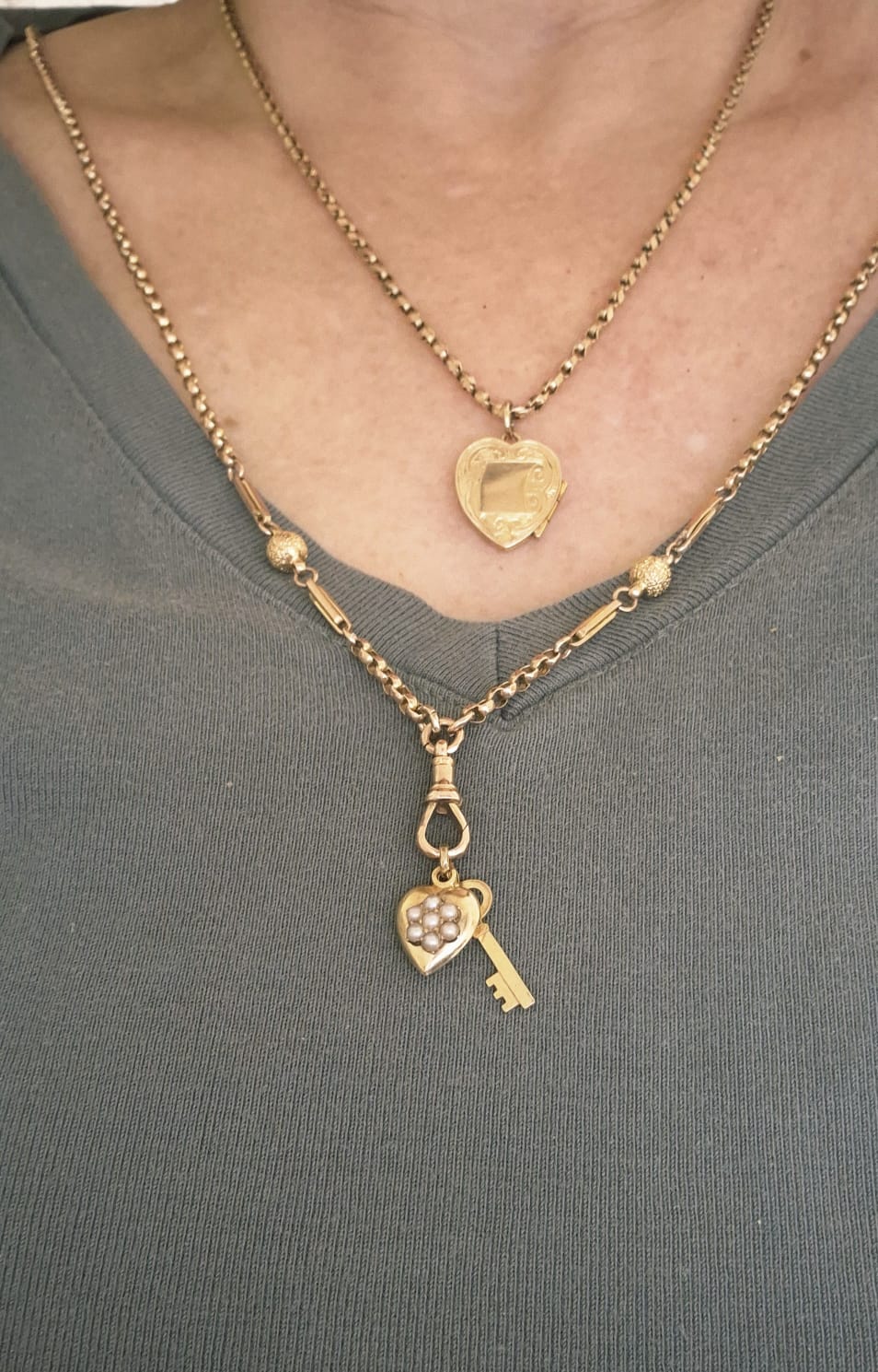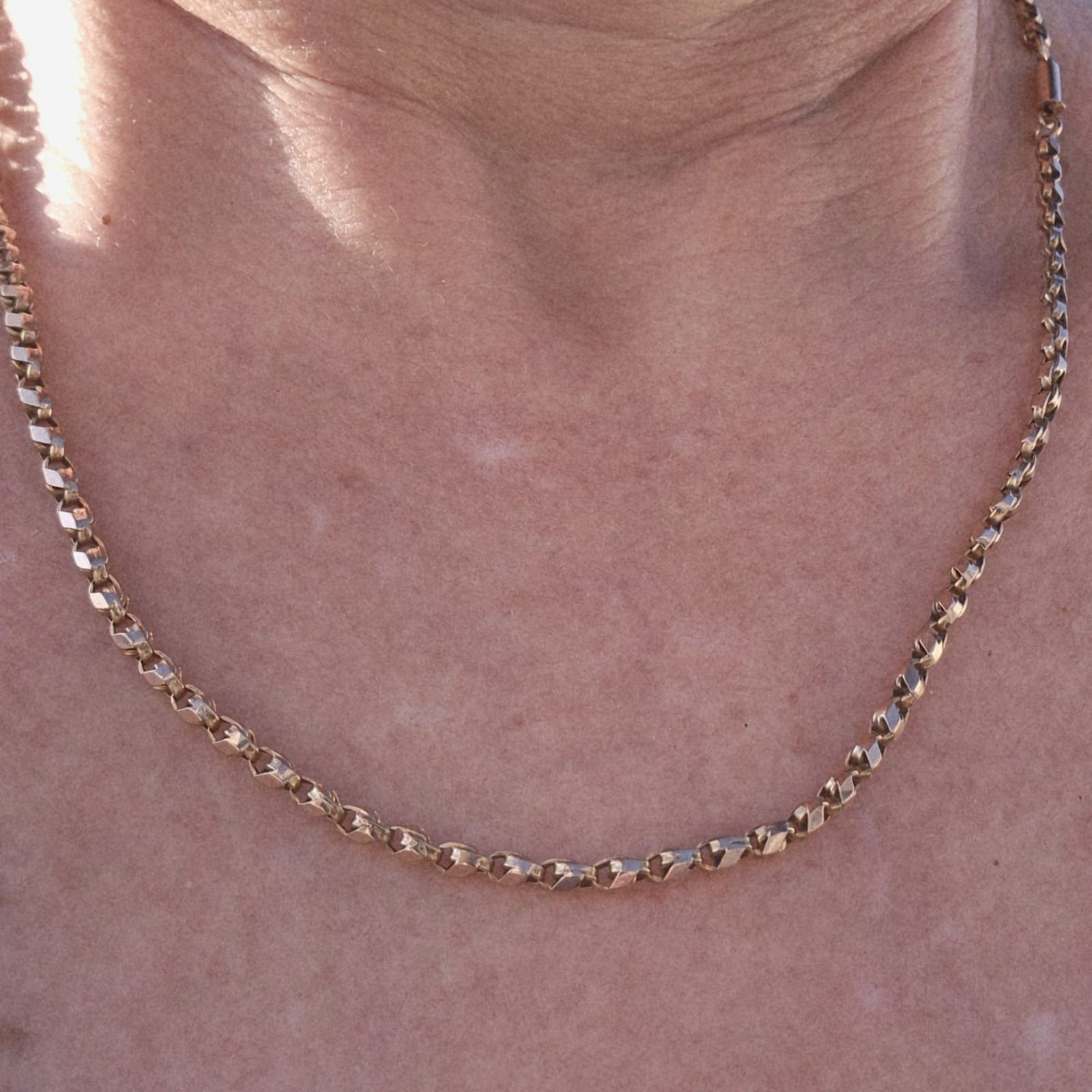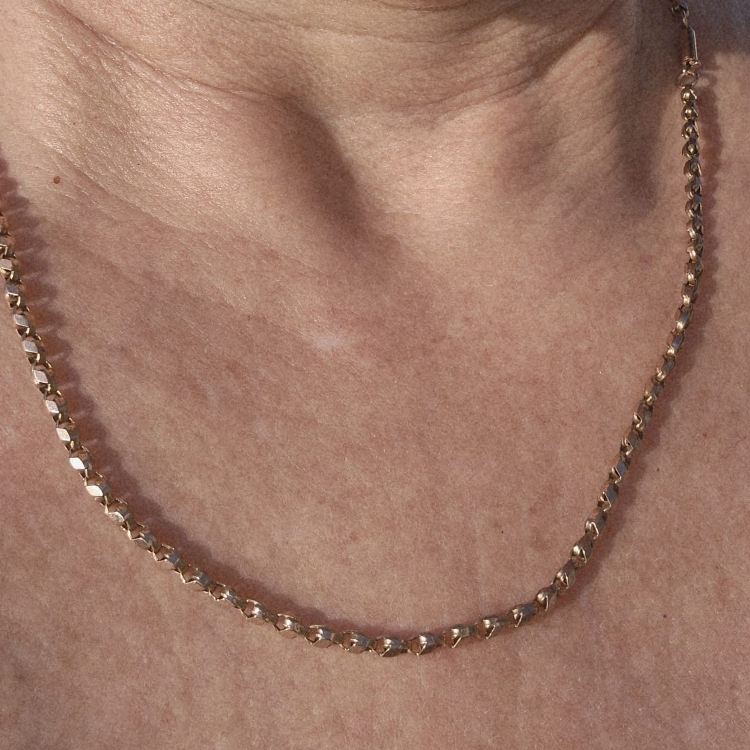 שרשרת עתיקה זהב 9 קאראט, בזהב אדמדם חמים, עם סוגר barrel clasp .