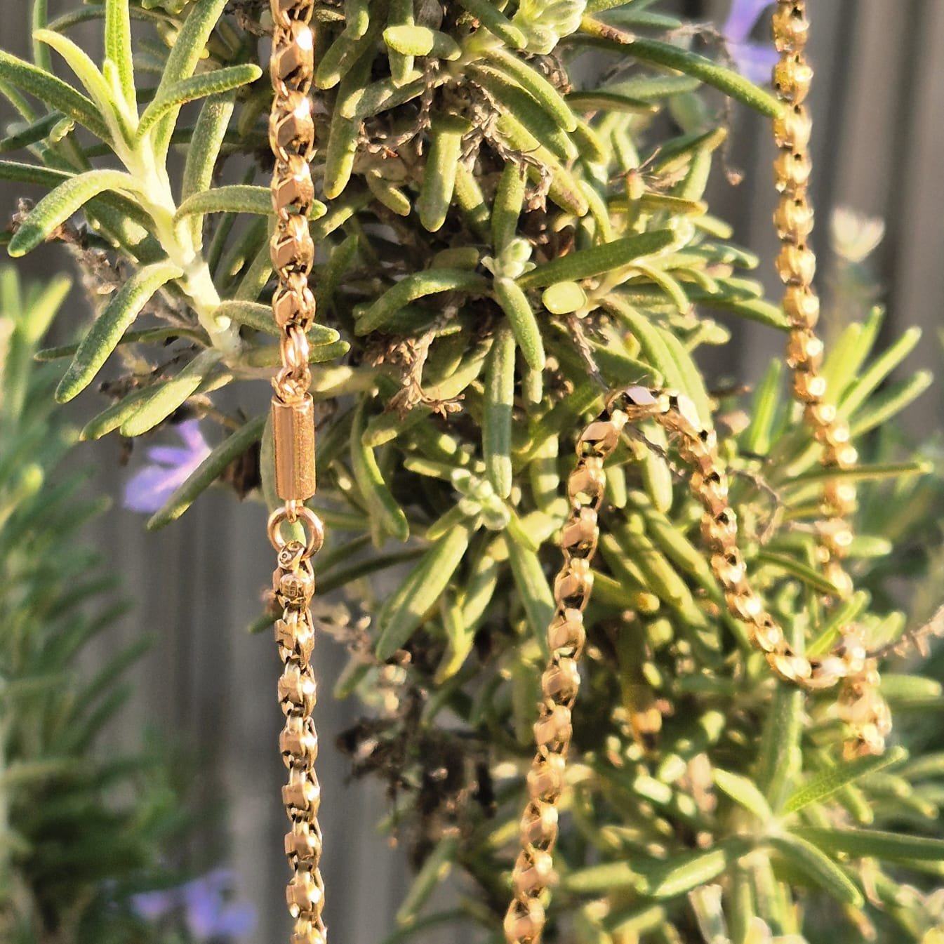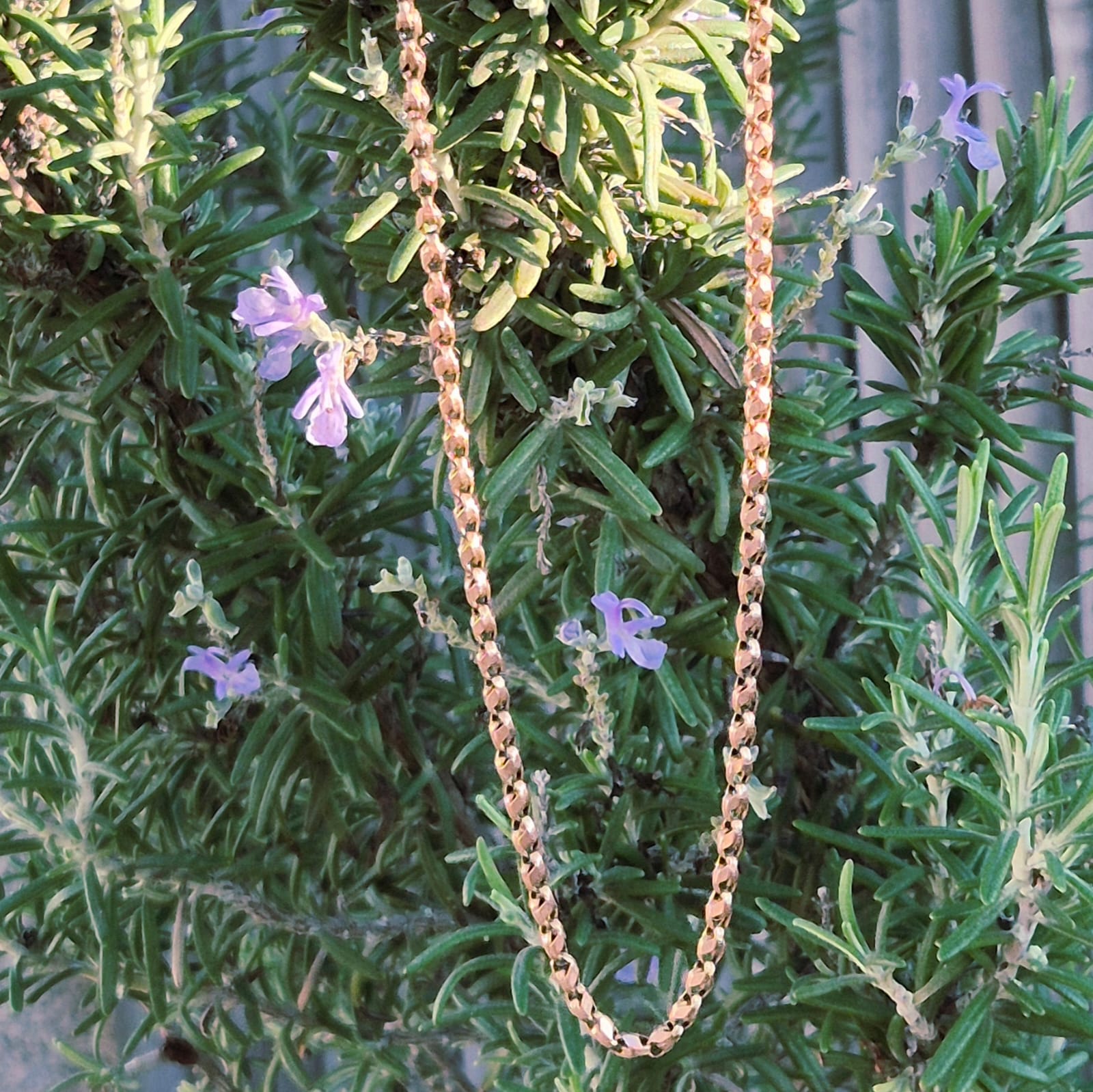השרשרת בנויה מחוליות מסוג tulip links המעניינות- חוליות קטנות בעלות חתך faceted היוצרות משחק אור לכל אורך השרשרת.