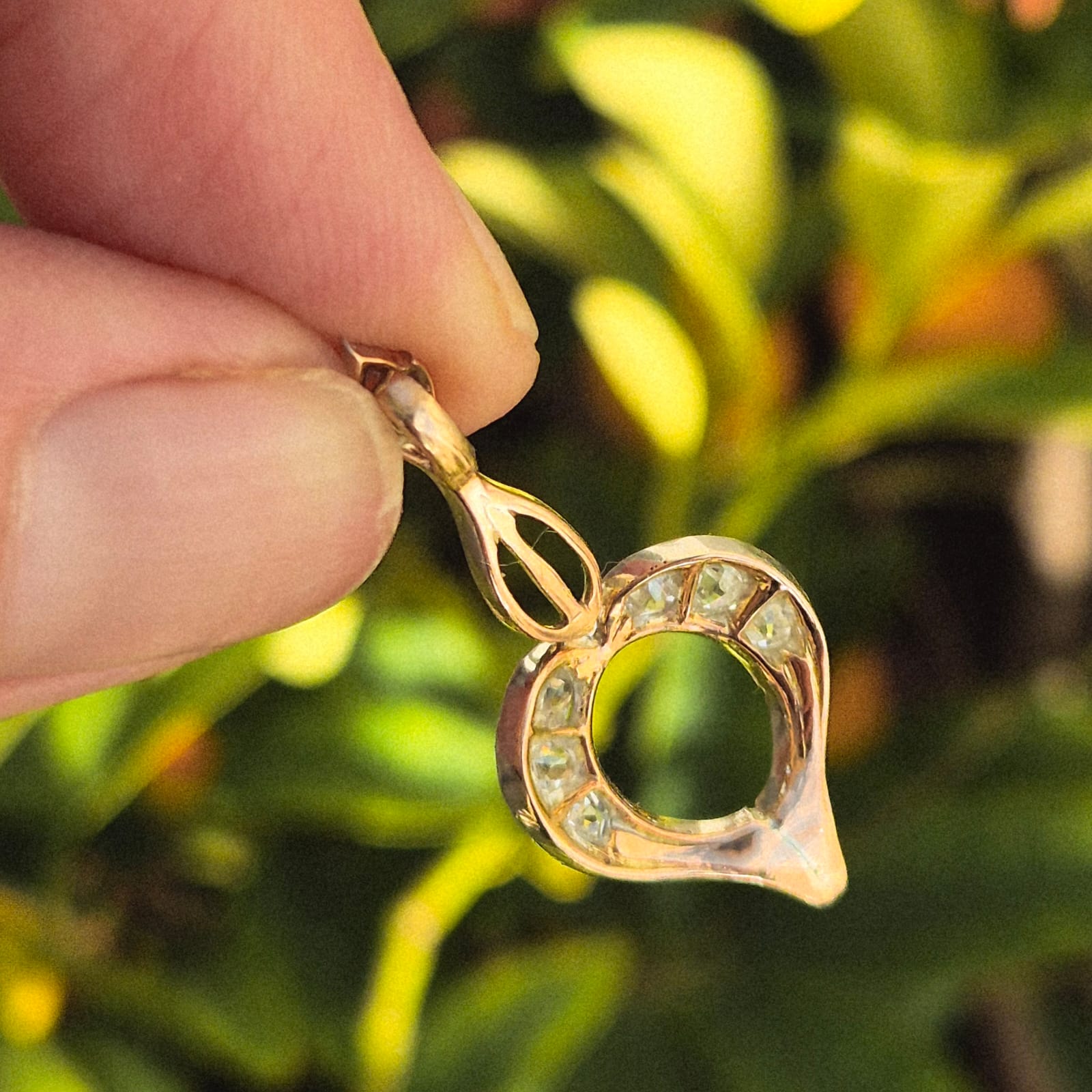 תליון לב עתיק, זהב 9 קאראט, בחזית מצופה בזהב לבן ובגב זהב צהוב חמים.